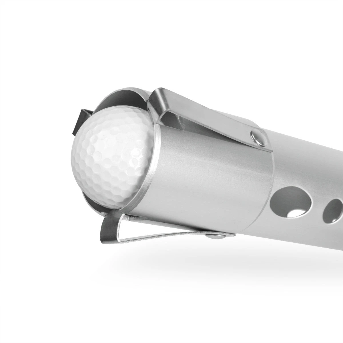 Stop bending over to pick up balls, save time and improve your practice sessions with the Orlimar Golf Ball Shag Bag! Features: zippered closure, form fitting aluminum handle, spring clips to secure the ball into the lightweight aluminum tube while the oversize nylon pocket stores 80 balls.