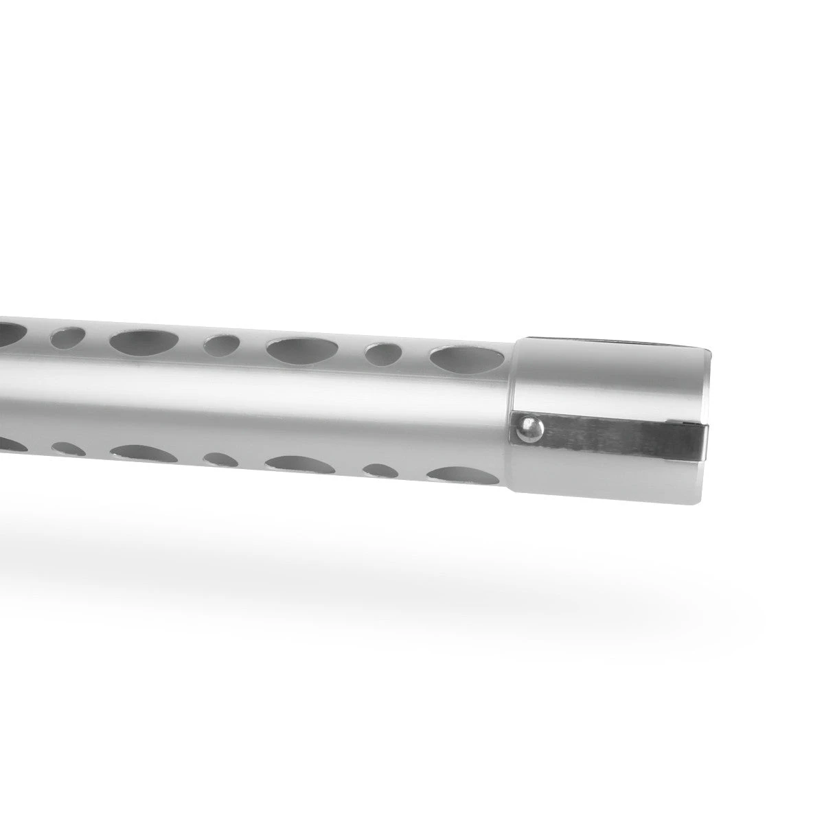 The spring clips on the aluminum tube grabs the balls and the sleeve holds them in place so they will not fall out.