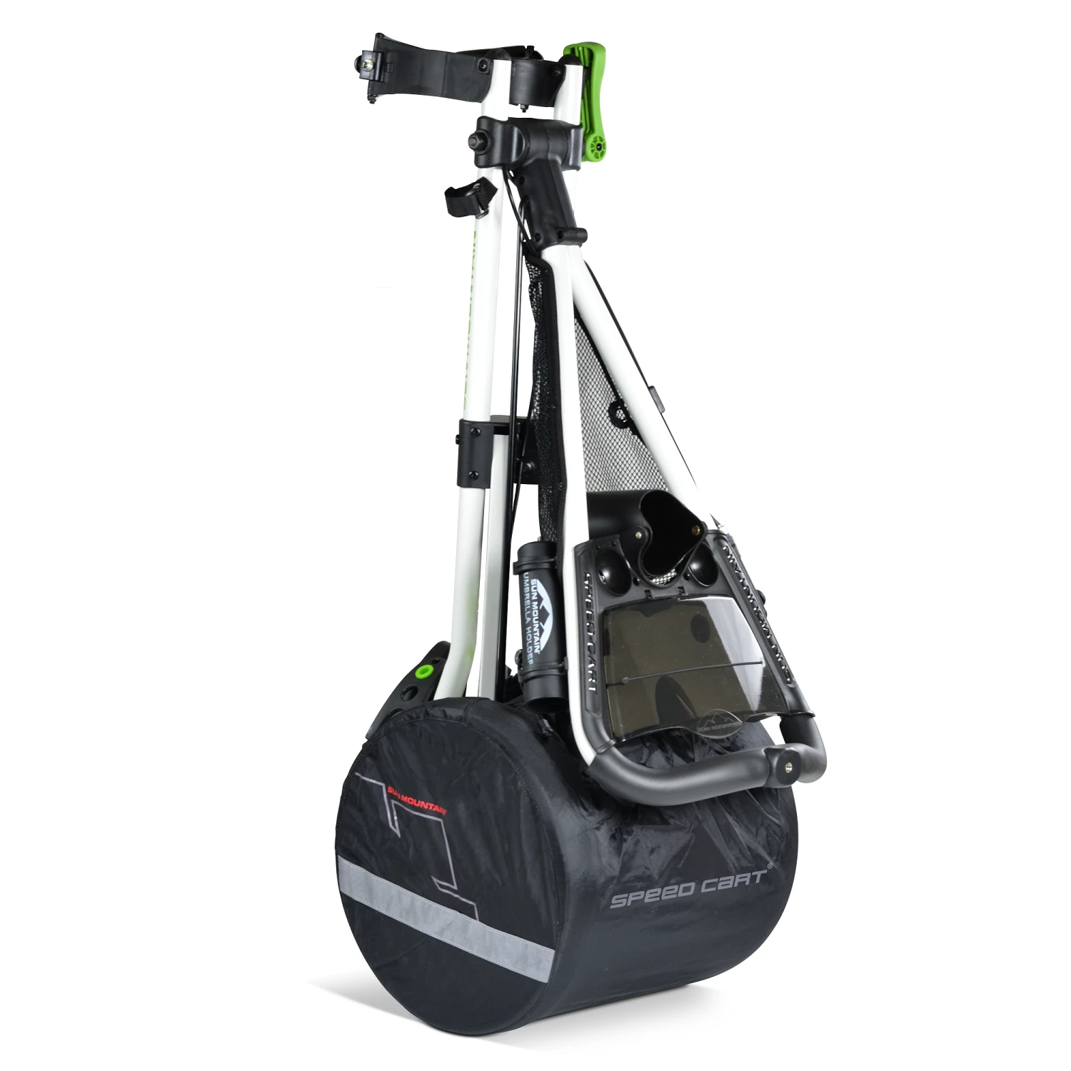 If you carry your cart with you and prefer not to get grass clippings in your trunk, think about getting the Speed Cart Wheel Cover. The nylon cover snugly stretches over the three cart wheels when the cart is folded.