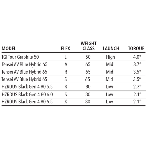 The position of the backweight helps deliver an optimally located CG, maximizing M.O.I. and aiding extreme stability and resistance to twisting at impact. Installation of different weights also allows dialing in of required swing weight at custom lengths. Installation of different weights also allows dialing in of required swing weight at custom lengths.