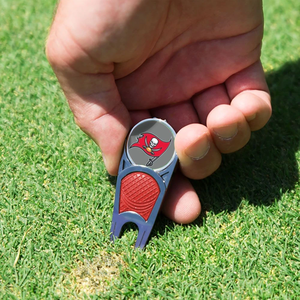 A cast metal divot fixer tool with magnetic cap clip and each has a removable ball marker. A great stocking stuffer for the golfer who has everything.
